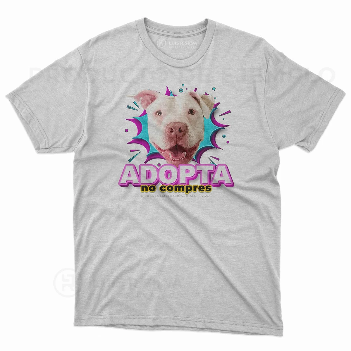 La camiseta a colores hecha en material reciclado con un diseño que promueve la adopción de animales de compañía es la elección perfecta para aquellos que se preocupan por el medio ambiente y quieren hacer una diferencia. ¡Únete a esta tendencia sostenible y demuestra tu compromiso con los animales adoptando esta camiseta única!850